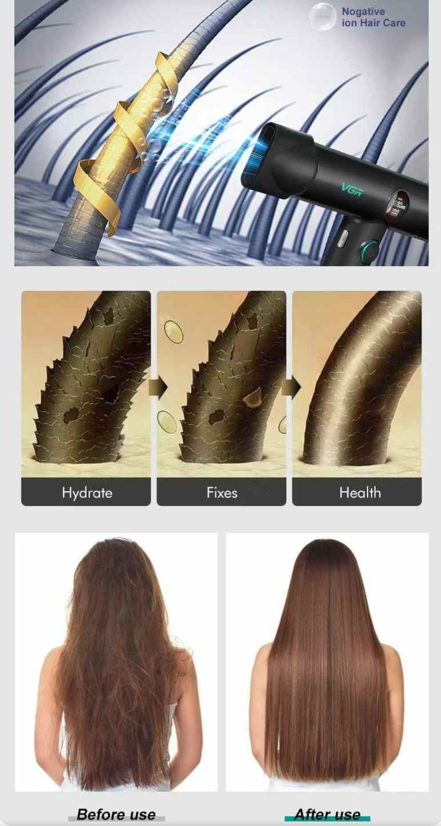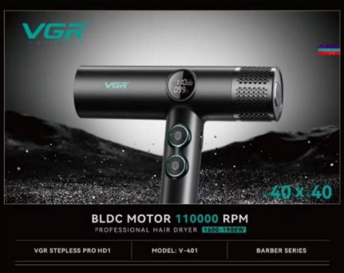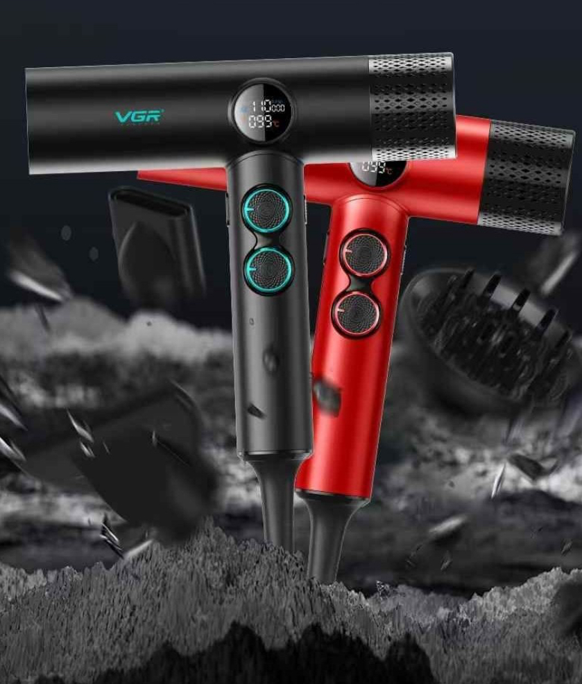سشوار حرفه‌ای وی جی آر مدل V-401 با باد سرد و متمرکزکننده