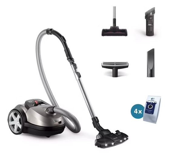 کیسه S-bag با ظرفیت بالا، مجهز به قفل اتوماتیک در زمان خارجکردن برای جلوگیری از پخش گردوغبار، قابل تعویض با انواع پاکتهای فیلیپس.