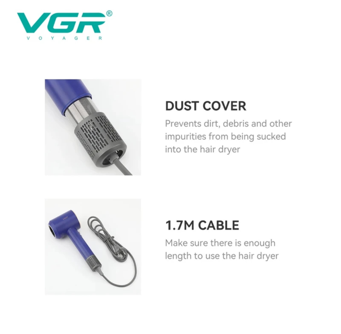 | سایر مشخصات | • موتور brushless با توان و دوام بالا • قابلیت تولید یونهای منفی برای جلوگیری از وز شدن مو • سه حالت مختلف دما/سرعت • دارا بودن حالت هوای سرد • دسته تاشو برای استفاده راحت در سفر • همراه با دفیوزر برای پخش یکنواخت هوا |